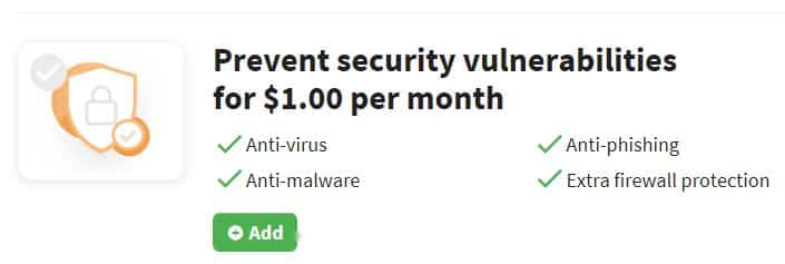 There’s one optional security bundle available for all subscriptions: it adds antivirus, anti‑malware, anti‑phishing and extra firewall protections for $1 per month, or $0.83 per month if billed annually.