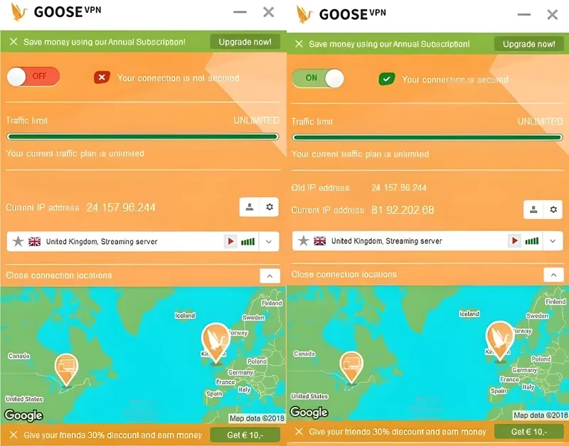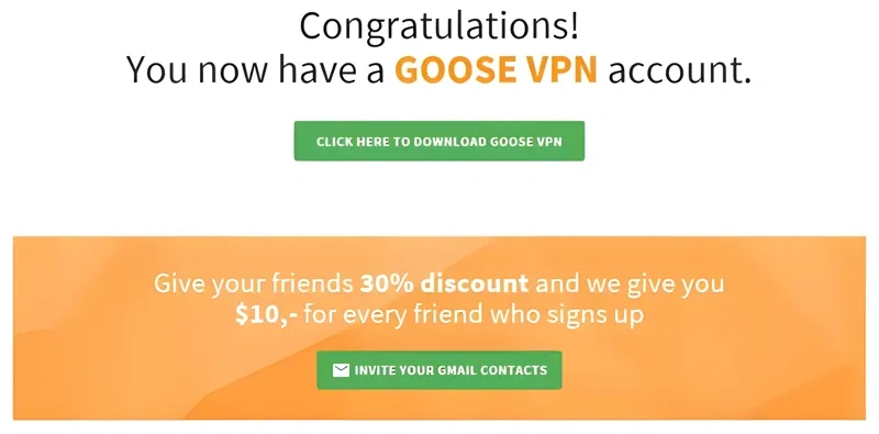 When joining GOOSE VPN, you can benefit from their referral system. By inviting friends to the service, you earn $10 for each successful referral, while your friends receive a substantial 30% discount on their chosen plan.